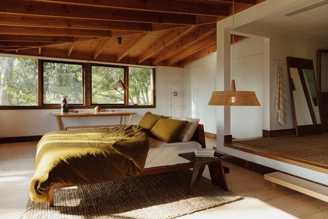 The bedrooms at Timba House are intimate retreats. Soft, natural light illuminates neutral linens, timber furniture, and carefully curated accents. Underfoot, Heidi Jute creates a grounding layer, its handwoven texture adding warmth, softness, and subtle visual interest.