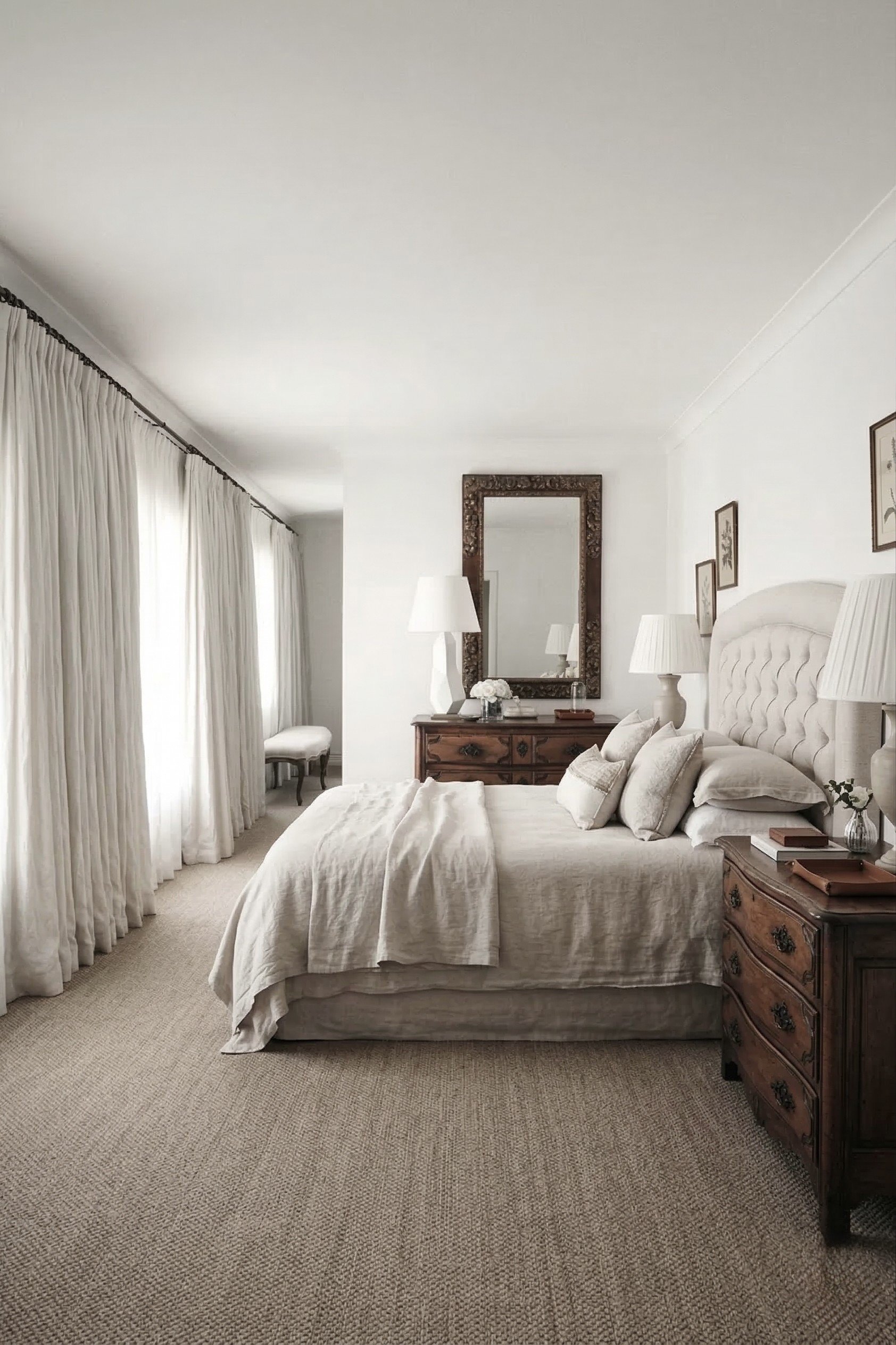 The client sought to transform a grand, light-filled home into a sanctuary of "Rustic Minimalism." The goal was to bridge the gap between historic architectural details—like ornate cornices and antique French furniture—and a modern, clean lifestyle. They required a flooring solution that was durable enough for a busy family but soft enough in tone to disappear into the room's neutral palette.